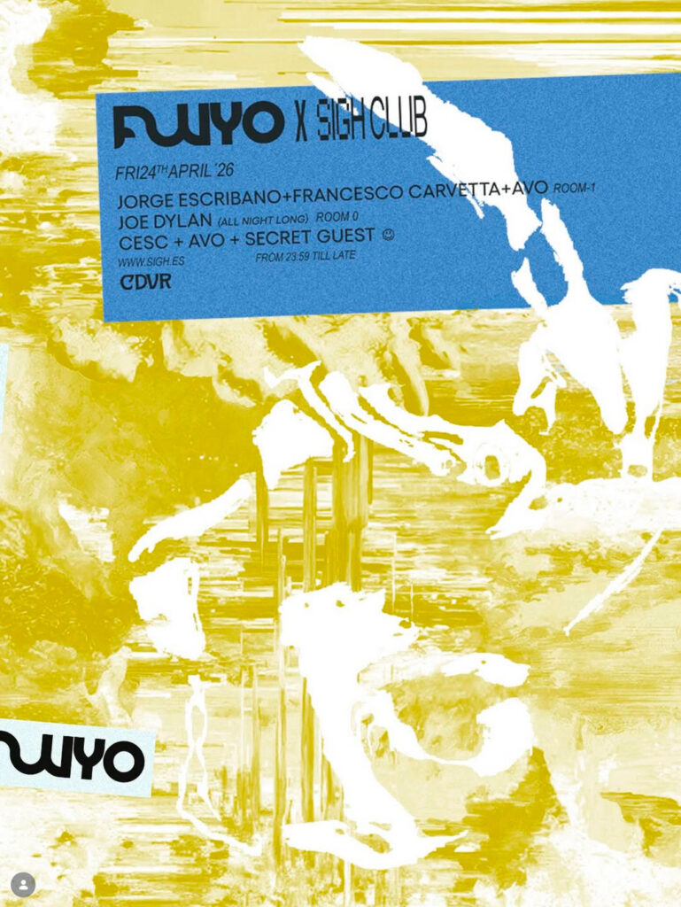 La siguiente parada será el club. El sello FLUYO se subirá a la cabina de la fiesta Sigh.CLUB en la sala Cadavra para llevar el house hipnótico y el techno ácido junto a Francesco Carvetta, Ivo y Joe Dylan, conformando un line-up con el que adentrarse de lleno en la oscuridad de la noche. Consigue aquí tu pase.