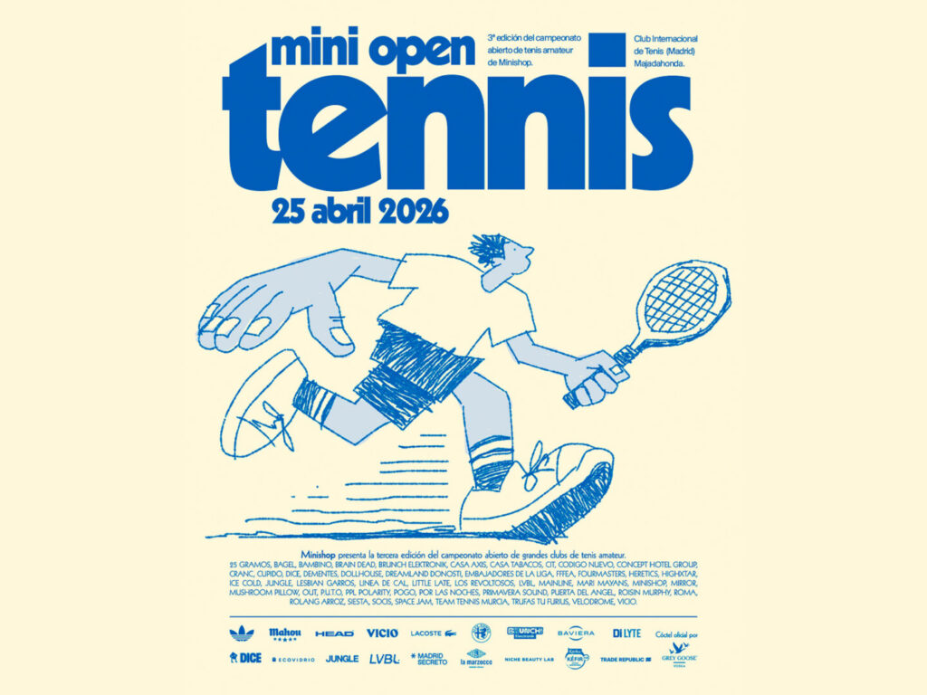 A la luz del sol nos iremos a jugar a MINISHOP OPEN TENNIS, el torneo-festival de tenis que regresa un año más con su edición más ambiciosa en el Club Internacional de Tenis de Majadahonda. Este año, el torneo contará con 51 equipos formados por deportistas profesionales artistas, colectivos creativos, marcas, medios y figuras clave de la escena cultural contemporánea. Entre los confirmados aparecen nombres como Primavera Sound, DICE, Códigonuevo, fffea, Lesbian Garros o HIGHXTAR.