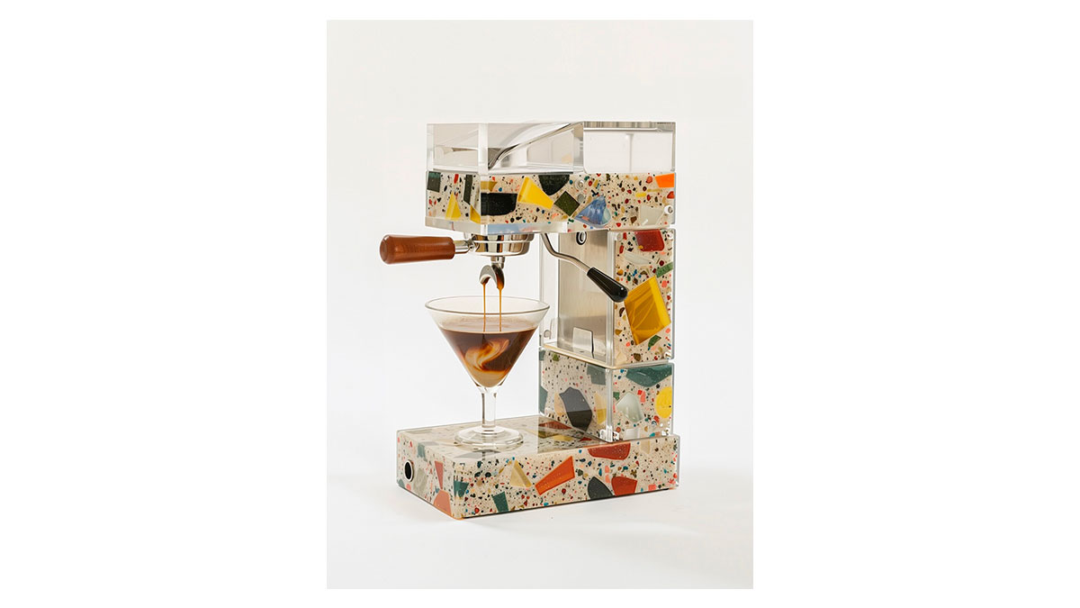 La primera impresión artística de Tina Bobbe muestra un objeto ficticio en la frontera entre lo cotidiano y lo absurdo. MARTINI TERRAZZO juega con la idea del objeto utilitario como forma de arte: una máquina diseñada específicamente para el espresso martini, presentada como una declaración escultórica.
