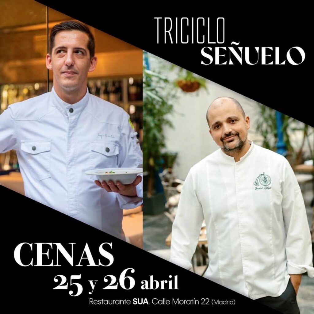 En esta ocasión, dos grandes de la gastronomía española, Sergio Giraldo (Señuelo, de Valencia) y Javier Goya (Triciclo, de Madrid) se reunirán en el restaurante SUA de Madrid para un cuatro manos, en donde cocinarán sus mayores especialidades, habrá de todo, para todos los gustos y para chicos y grandes.