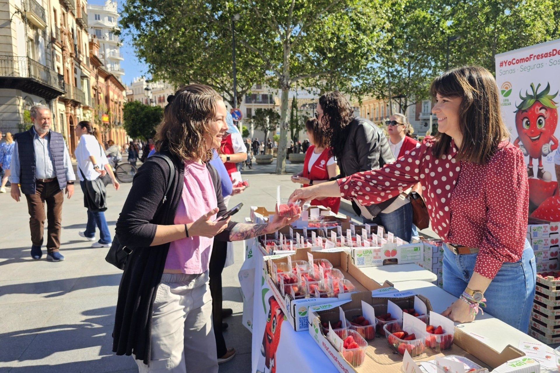La Unión de Pequeños Agricultores y Ganaderos (UPA) de Andalucía ha organizado este miércoles la campaña #YoComoFresasdeHuelva en la Puerta de Jerez, en Sevilla, donde ha vuelto a acoger un reparto de un millar de fresas de UPA Andalucía, con el objetivo de promocionar un producto «sano, seguro y sostenible», junto a la defensa de «un sector clave que genera riqueza y empleo en la provincia de Huelva y a la exigencia de unos precios justos para las producciones andaluzas».