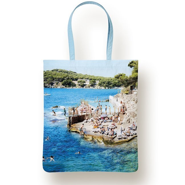 La (mítica) piscina de hotel Le Provençal de Hyèress fotografiada por Massimo Vitali ilustra esta bolsa de Vilebrequin. Y tiene traje de baño a juego. Lo quieres, claro.